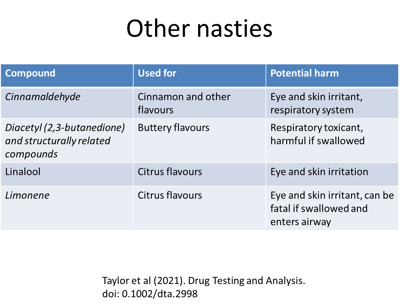 a lot of the scents and flavouring or flavourings that have been used in foods, so there is no reason to believe they would be particularly harmful is inhaled