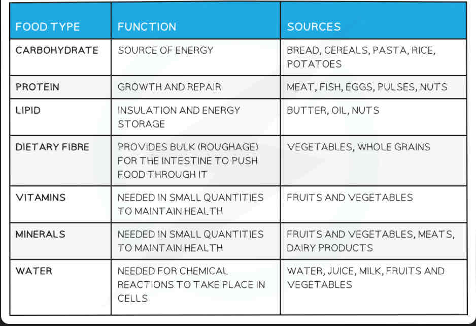 Calcium: for bones and teeth, for blood clotting.