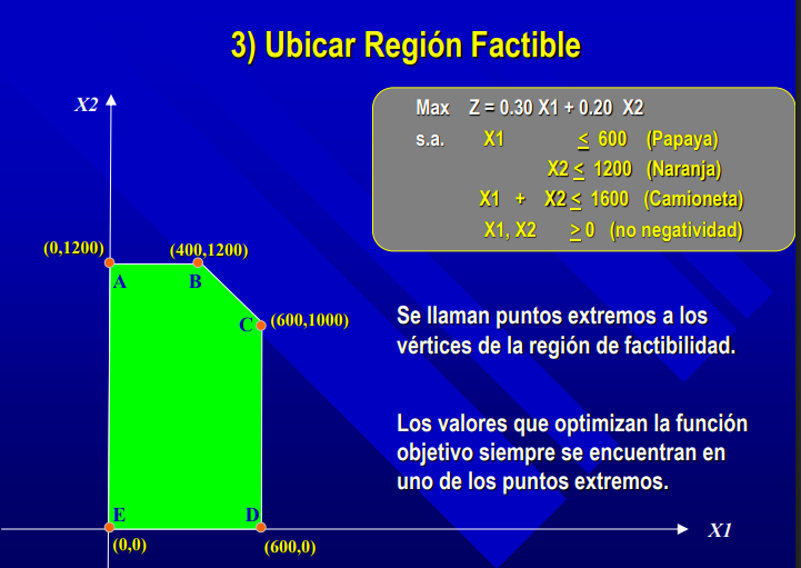 Se llaman puntos extremos a los vértices de la región de factibilidad.