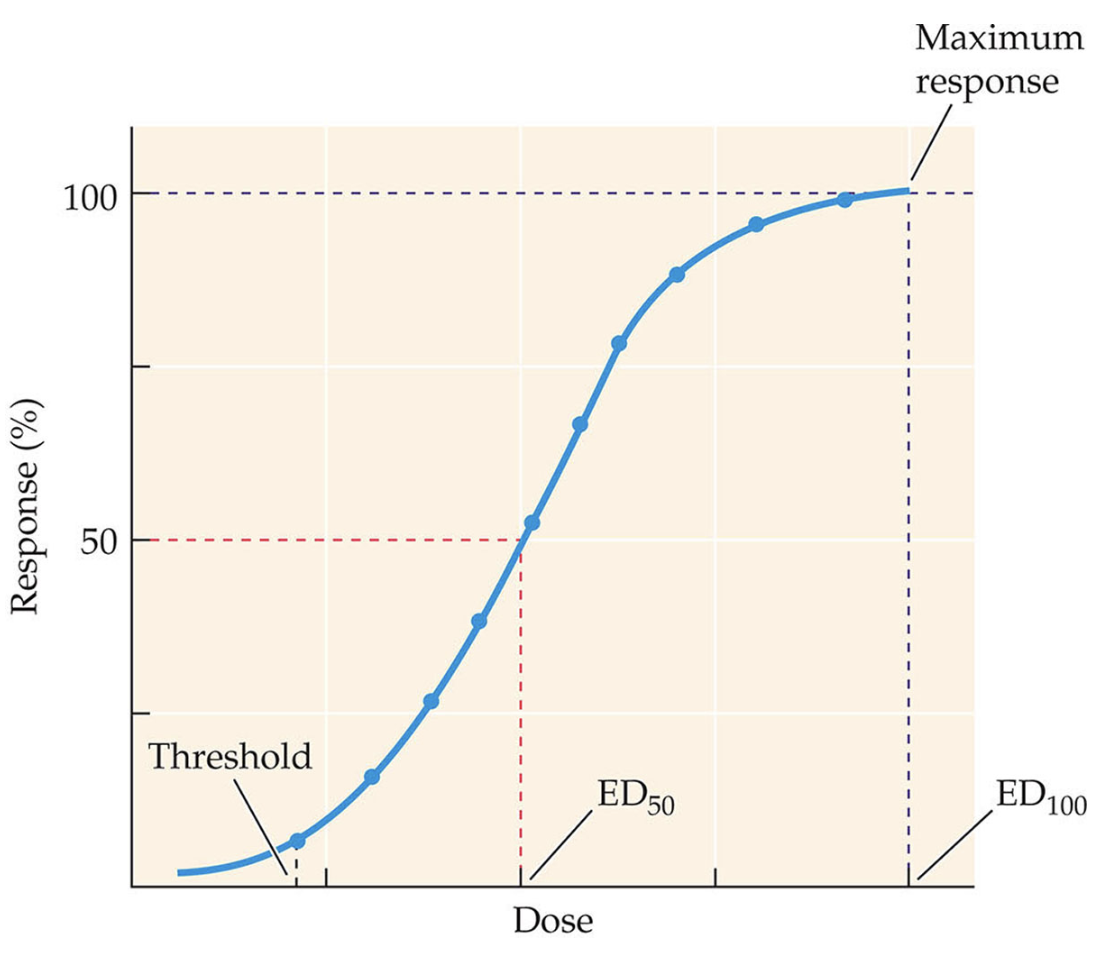 When plotted on a semi-log scale, the curve takes on a classic S-shape. At low doses, the drug-induced effect is slight because very few receptors are occupied. As the dose of the drug is increased, more receptors are occupied, and a greater biobehavioral response occurs.