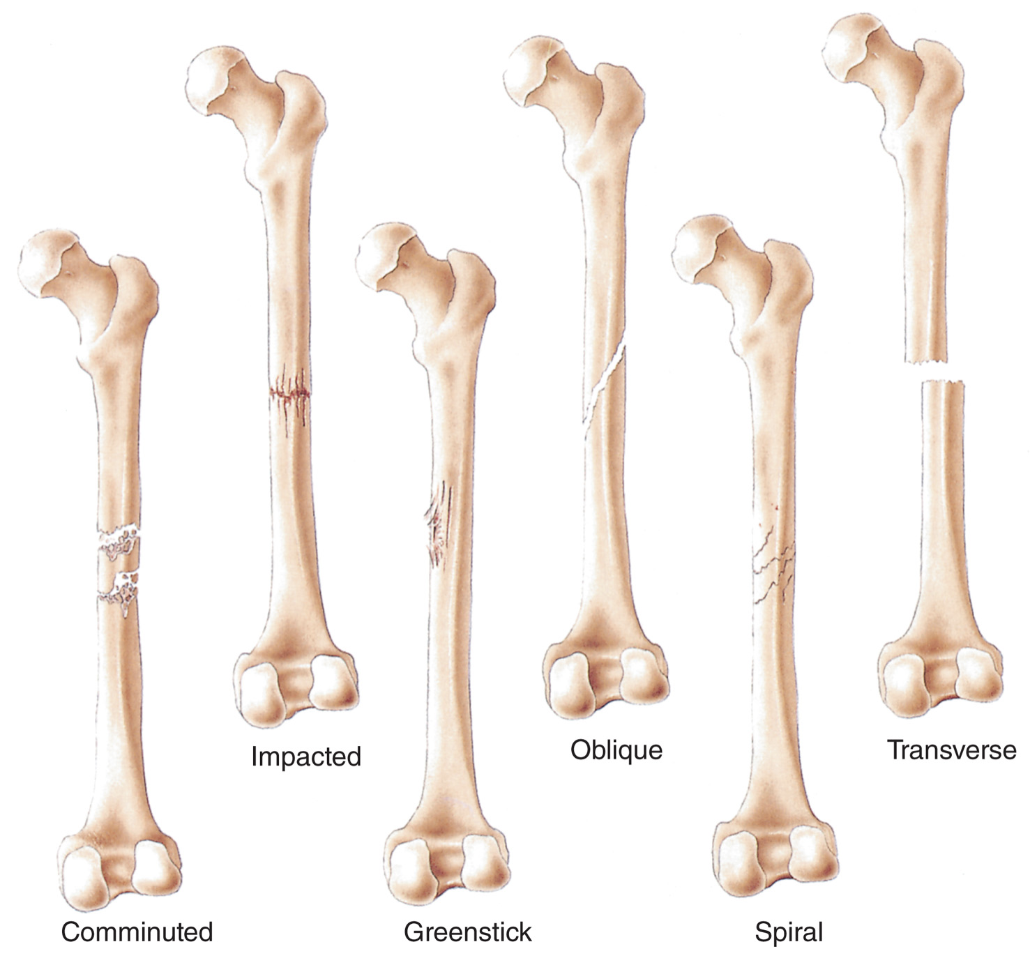 Femur fractures can be accompanied by bleeding, pain, and muscle spasm.