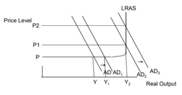 The level of inflation that occurs depends upon how large the increase in demand is and how near the economy is to full employment. This is the level of employment where all factors of production in the economy are fully employed. An increase in demand at full employment will lead to inflation, but not economic growth.