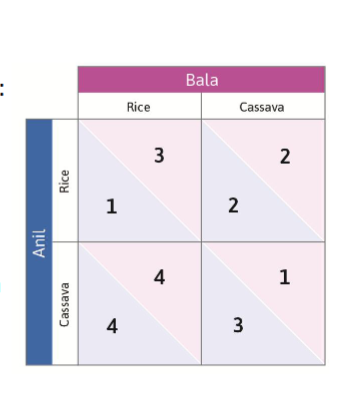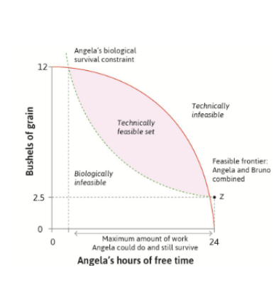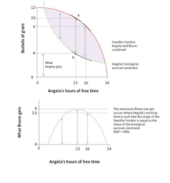 Angela needs 2.5 Bushels of grain to survive. Suppose the outside option provides 2.5 bushels.