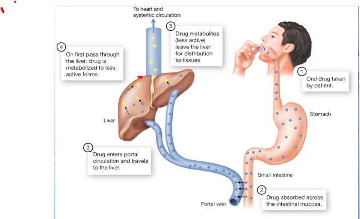 drugsFirst-pass effect (hepatic first pass) – a process in which the drug passes to the liver first