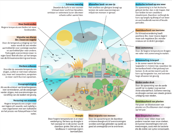Fytoplankton: 50% aarde→ warmer water: minder fytoplankton → minder fotosynthese → daling zuurstofproductie → minder opname CO2