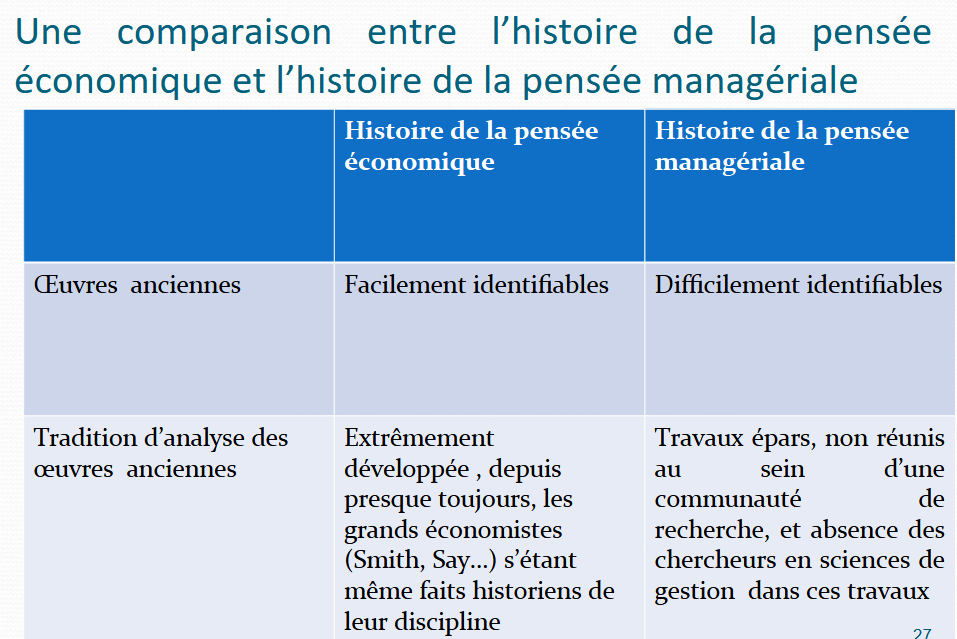 Il n’y a donc pas — en France — de communauté de recherche de la pensée managériale contrairement à l’histoire de la pensée économique qui est extrêmement développée.