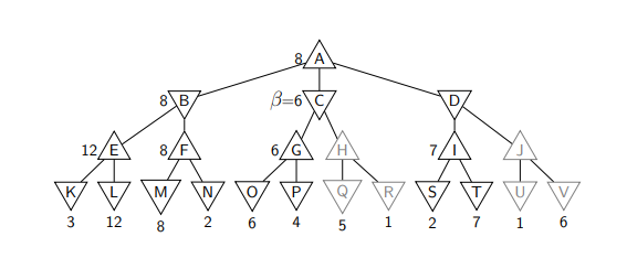 ▶ We don’t need to look further below C: H, Q, and R are pruned