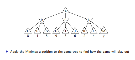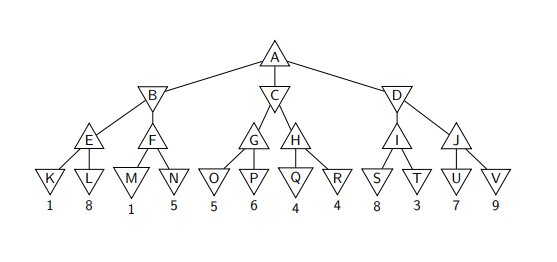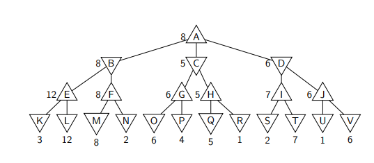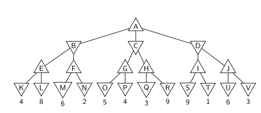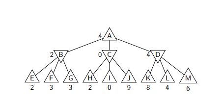▶ At A, it is MAX’s turn. MAX will choose the maximum of B, C, D