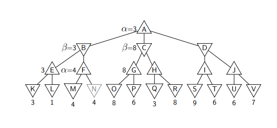 ▶ At B, MIN would choose F, so the value of B is 4