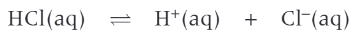 example: HCl + H₂O ⇌ H₃O⁺ + Cl⁻