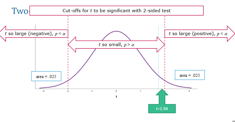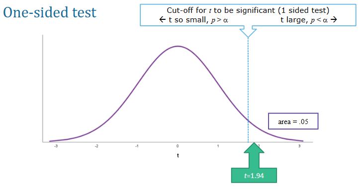 One-sided test - if dif turns out to be in opposite dir. you can’t reject H0 even if p < α