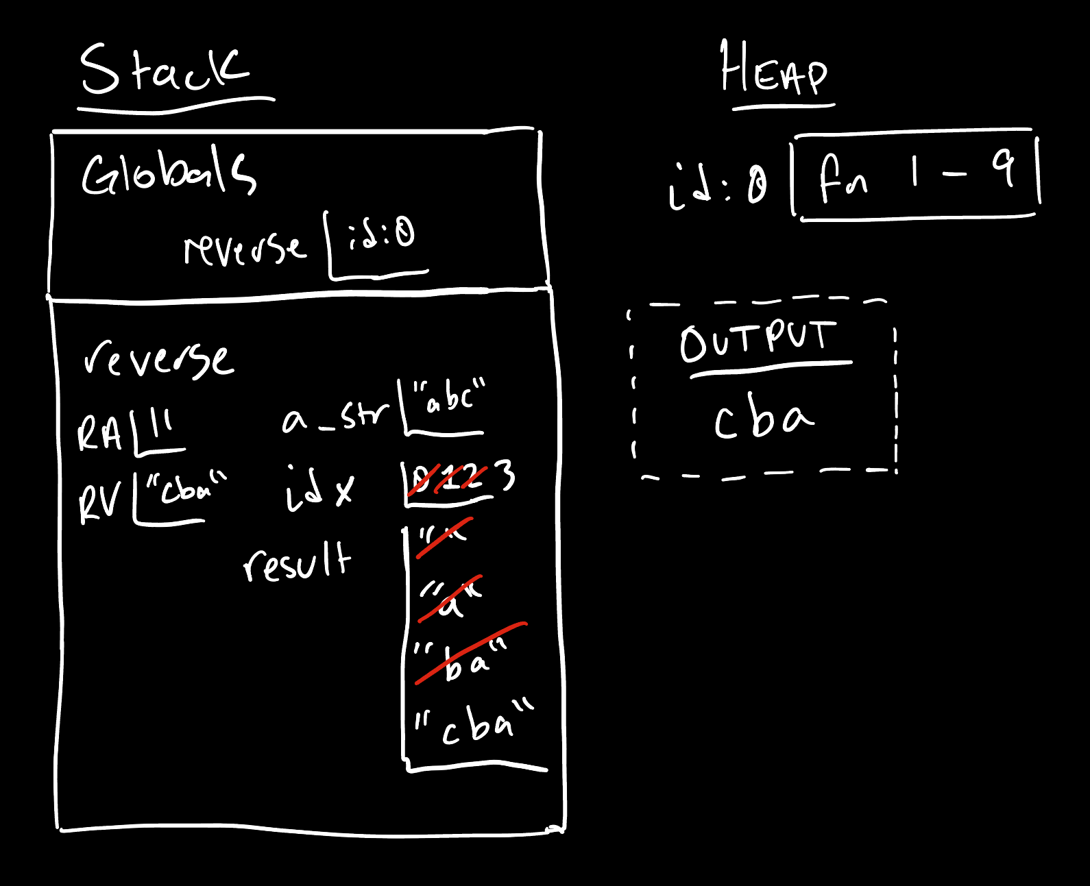 with the following contents. You are encouraged to type it out, rather than copy paste, to get a feeling for the syntax. The point of the program is to reverse a string by iterating through each of its characters and using concatenation in a clever way, by prefixing the result