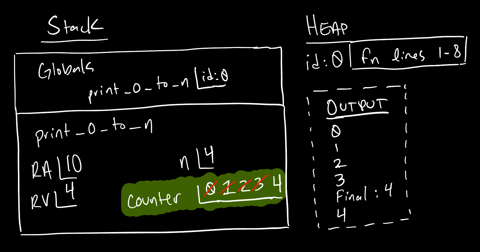 You are once again encouraged to try producing a memory diagram of the above code listing. It will ultimately look like this: