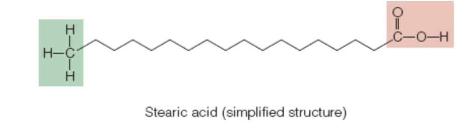 one end: chain of carbon & hydrogen atoms with an acid group (COOH)