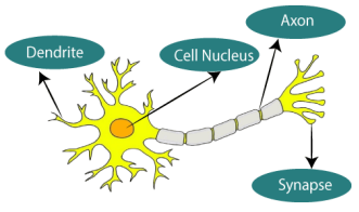 In human brain, dendrites: input, cell body: processor, synapse: link, axon: output