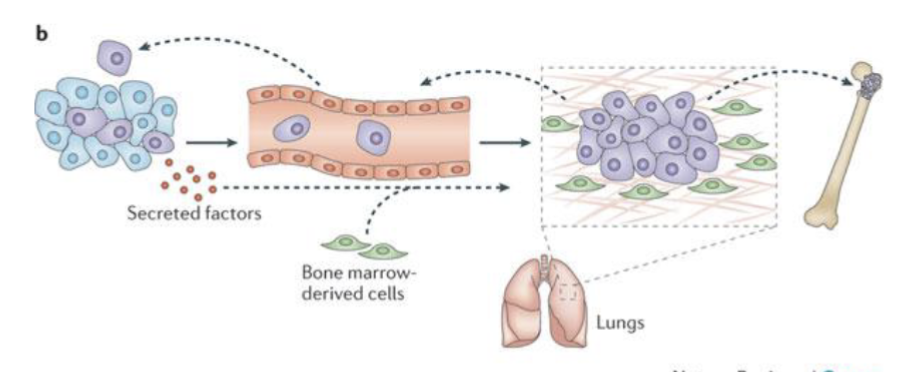 Pre-metastatic niche - cancer cells can release factors to prime the pre-metastatic site to make it more favourable for establishing metastases