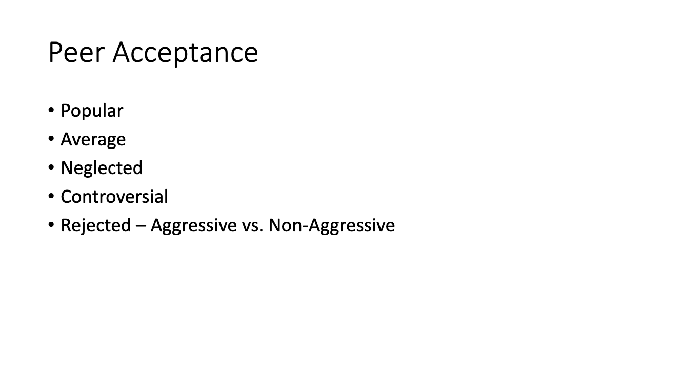 As children grow older and begin to spend more time with peers rather than solely with parents, peer acceptance becomes a critical part of their social development. A child's social rank within their peer group can influence the types of opportunities, privileges, and relationships they are exposed to. In school settings, especially in middle school, peer acceptance often shapes group dynamics and status hierarchies.