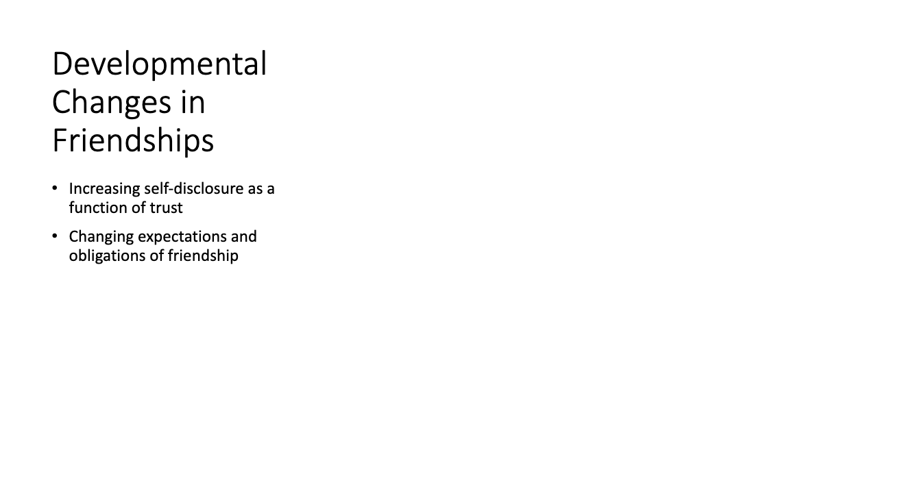 Emotional support is a central foundation of friendship, especially as children and adolescents grow older. One key feature of developing friendships is increasing self-disclosure, where individuals begin to share more personal and sometimes sensitive information. This process is often rooted in trust, as revealing personal thoughts or experiences—like discussing romantic interests or family problems—is typically done with the expectation of empathy, confidentiality, and support. For example, high school girls might share their feelings about a crush with their close friends, working together to figure out how to approach the situation. These exchanges serve both problem-solving and bond-strengthening functions.
