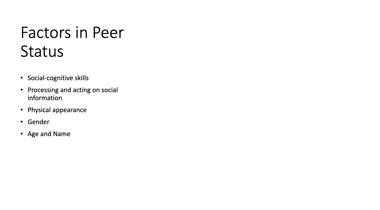 One method used to assess peer status is the peer nomination technique, where children are asked to name classmates they like or prefer to play or work with. This method helps researchers categorize children into different social status groups: