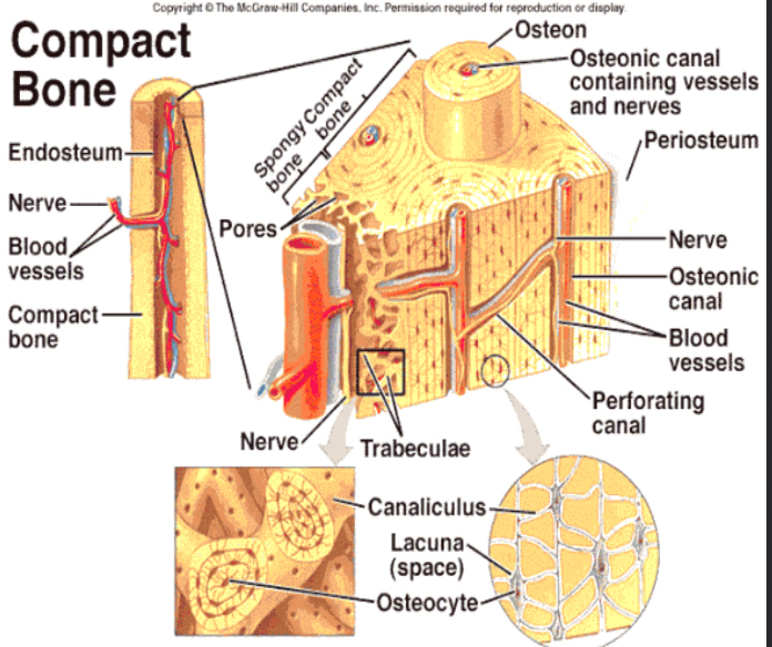 Osteocytes, Haversian and Volkmann’s canals, lacunae.