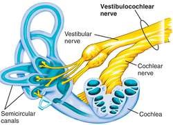 Function: receptors in the inner ear (within the temporal bone) for equilibrium and hearing