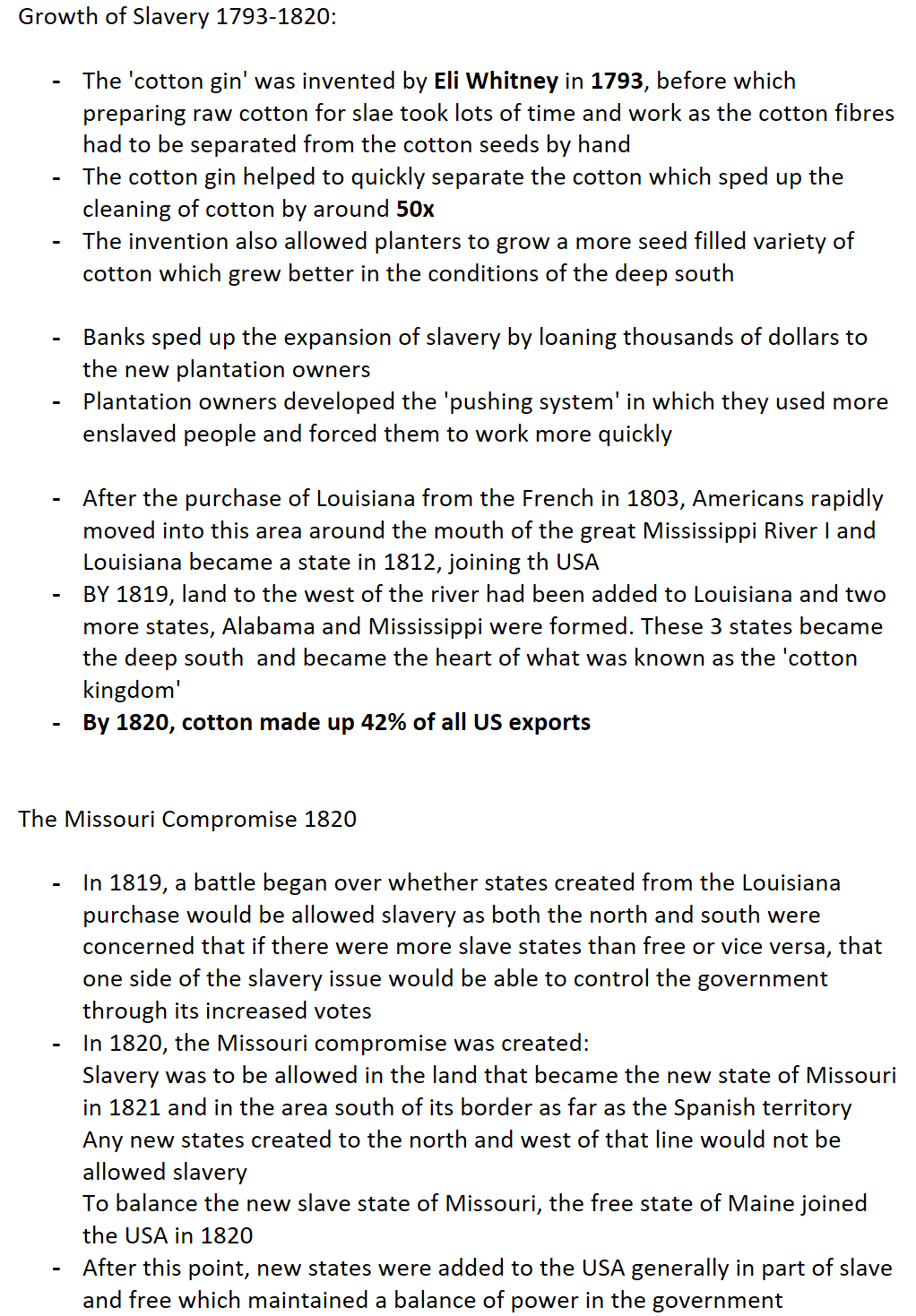 The expansion of southern cotton plantations and of slavery 1793 to 1838