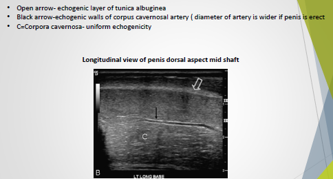 Used to demonstrate the cavernosal arteries in longitudinal views.