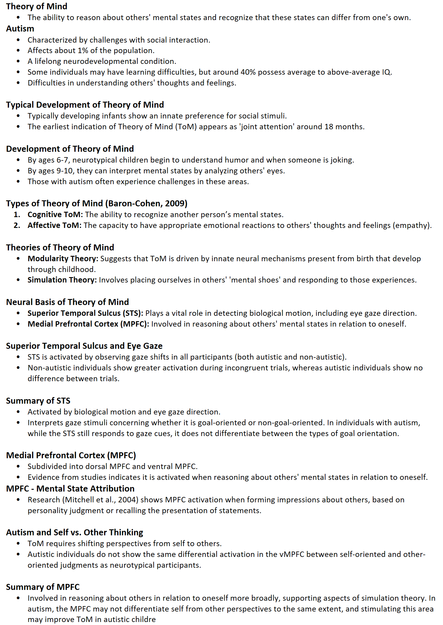 Types of Theory of Mind (Baron-Cohen, 2009)