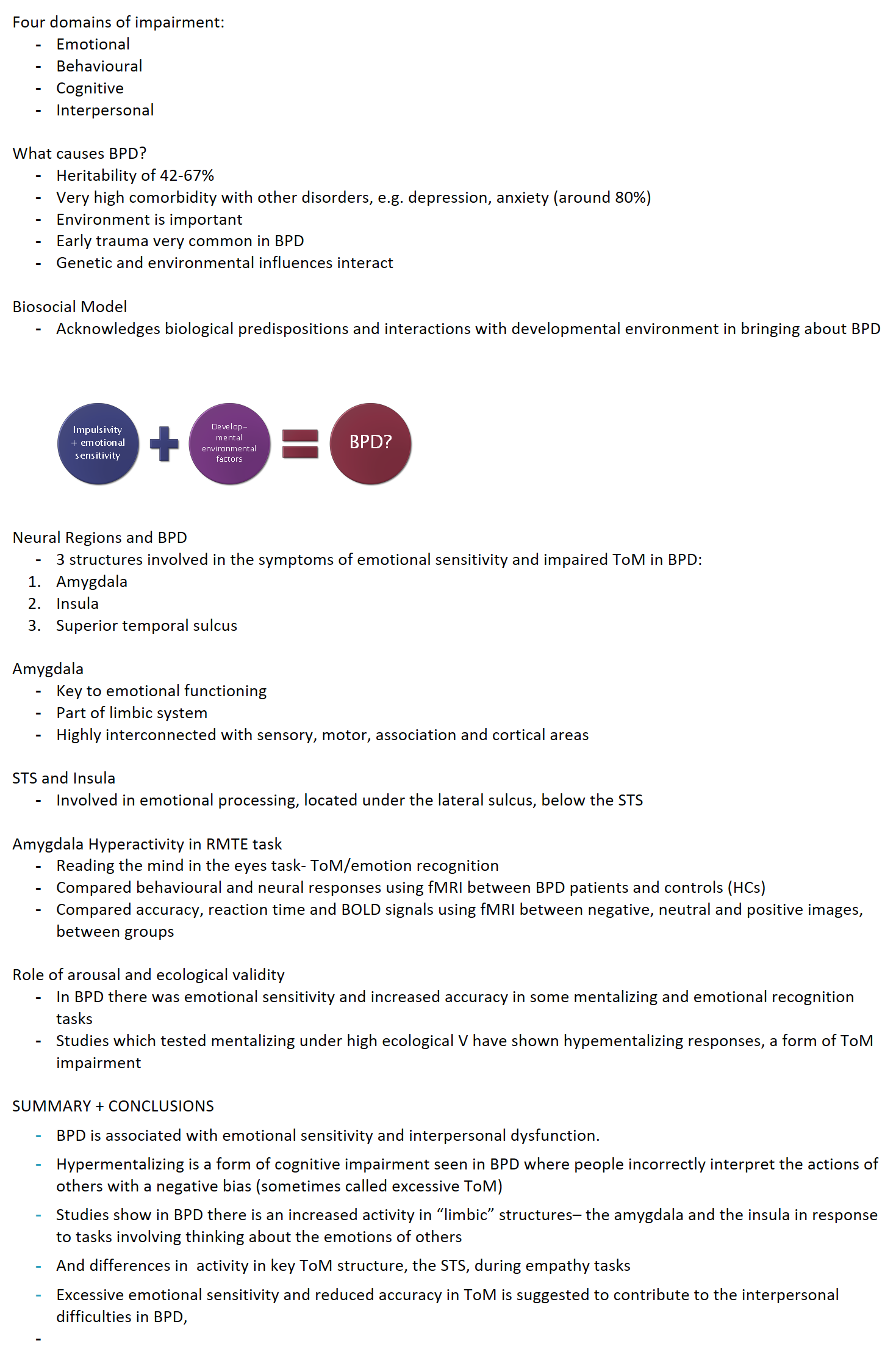 3 structures involved in the symptoms of emotional sensitivity and impaired ToM in BPD: