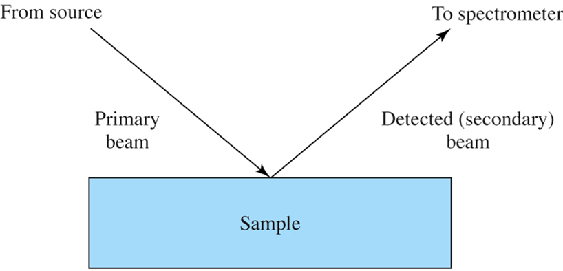 Analysis relies on striking the sample with an incident (primary) beam followed by detection of the emitted beam from the sample.