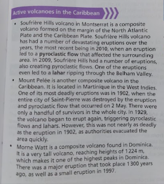 Example: In 1997, 19 people were killed in Montserrat, as a result of a pyroclastic flow down Mosquito Ghaut.