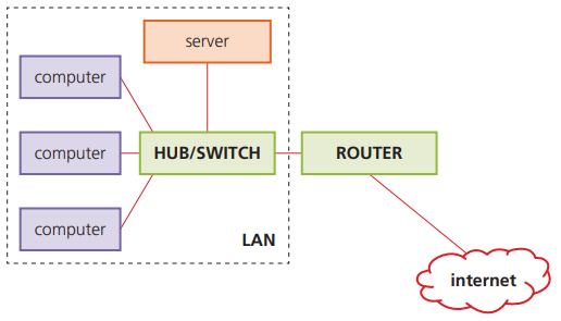 A LAN will consist of a number of computers and devices that are connected to hubs or switches