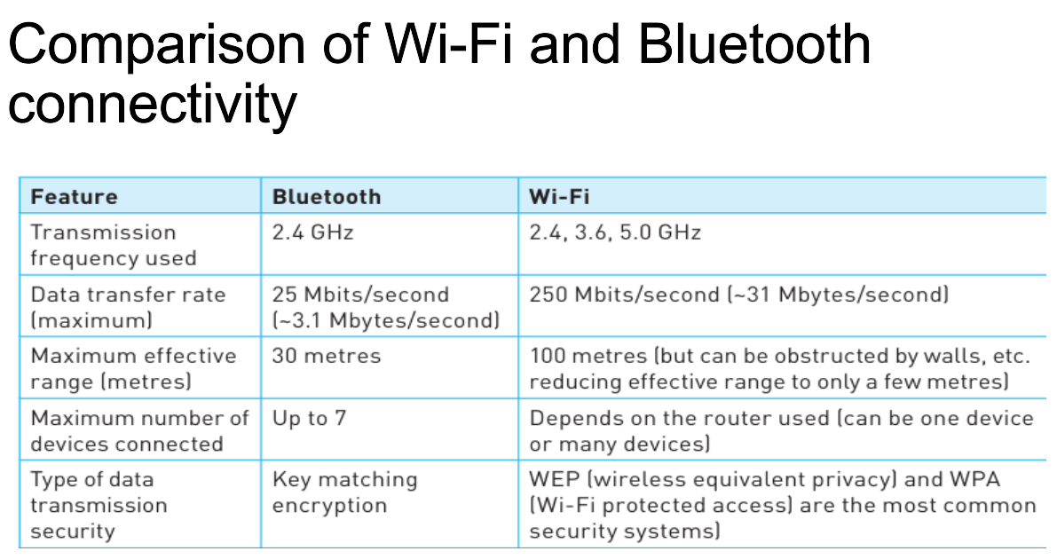 Both Wi-FI and Bluetooth offer wireless communication between devices
