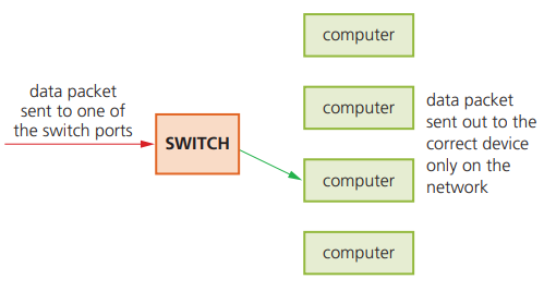 A switch matches the MAC address of an incoming data packet arriving at one of its ports , and directs it to the correct device