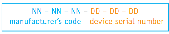 It is made up of 48 bits, shown as 6 groups of hexadecimal digits - the first 6 hex digits are the manufacturers code,and the second group of hex digits are the unique serial number of the device itself. (eg: 00 - 1C - B3 - 4F - 25 - FF)