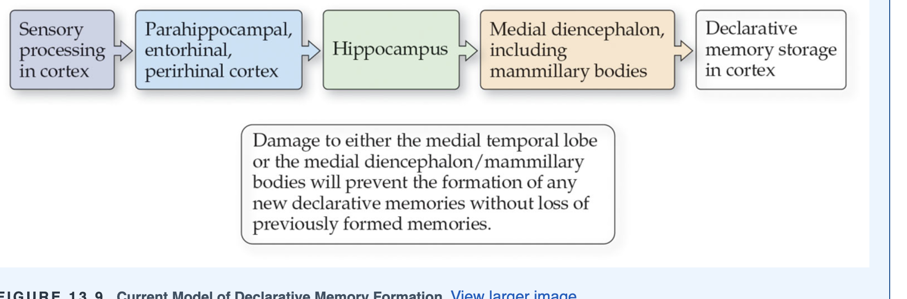 cause of korsakoff syndrome is due to the lack of vitamin thiamine. Alcoholics who obtain most of their calories from alochol and neglect their diet have this deficiency. Treating with thiamine prevents further deterioration of memory funciton but not recesre the damage. SOOO hippocampus, mammillary bodes, and dorsomedial thalamus is needed to form new declaritve memories. declaritve memories ar enot stored in the long term. candiate is the cerebral cortex.
