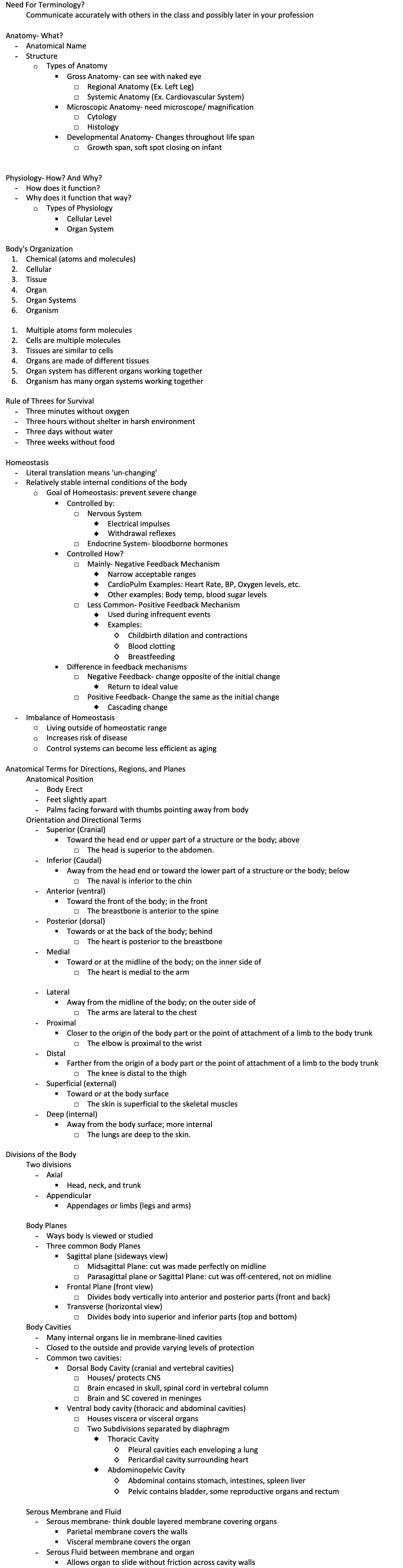Body's Organization
