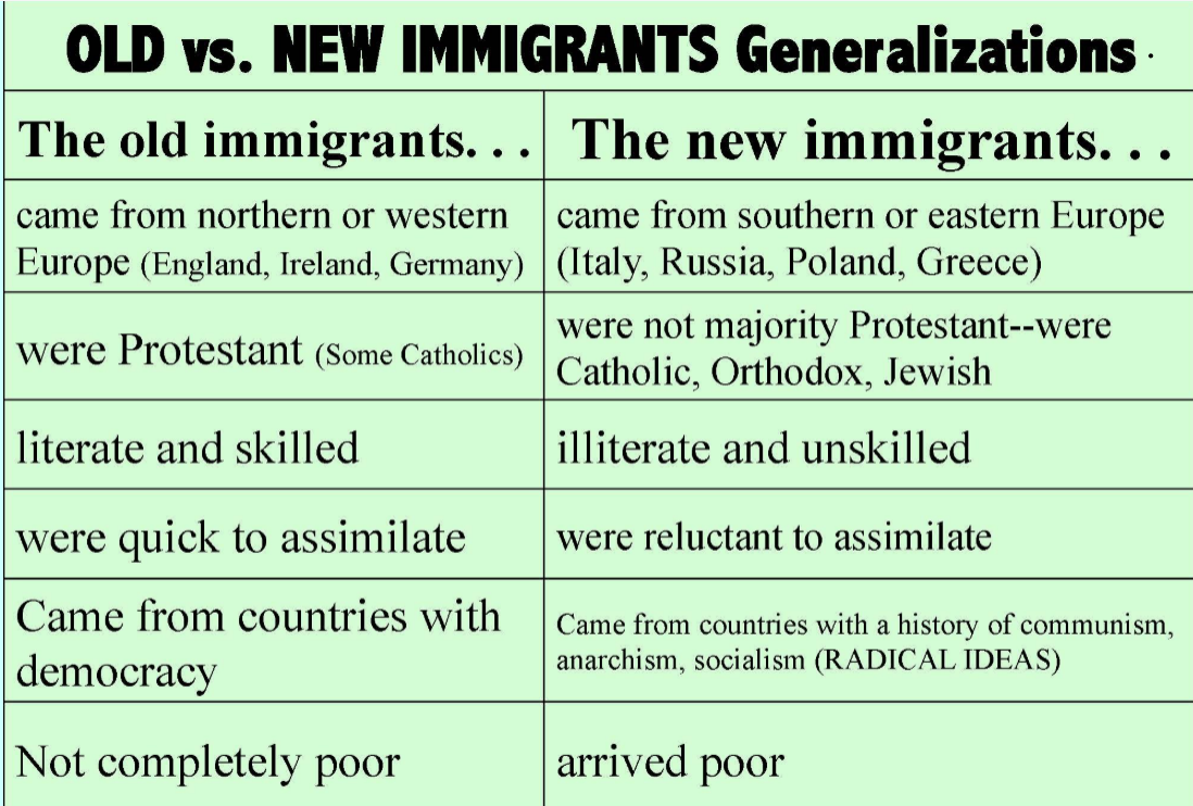 Nativism: The concept to blame immigrants for corruption in government, crime, radicalism (unions), violence, cheap labor, and labor competition.