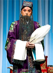 Laosheng—middle aged man with a beard [major middle to old male role]; decency, usually serious, loyal; must have good singing and acting skills