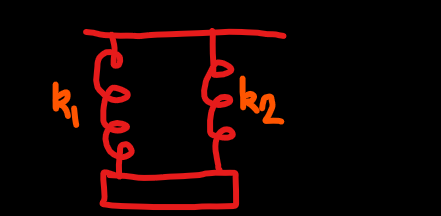 Combination of the two springs can be modelled as a single spring, with spring constant equal to KT = K1 + K2