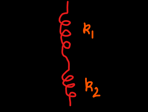 Spring resulting from the combination of the two springs will act like a single spring, with spring constant equal to 1/KT = 1/K1 + 1/K2